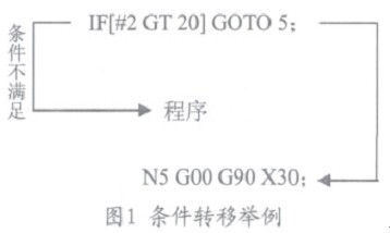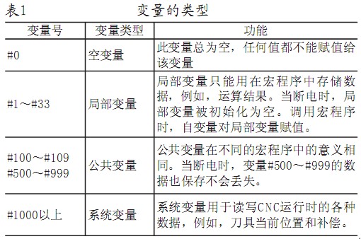 一般的編程中允許對變量命名,用戶宏程序不可以,一個變量需用“#”號和后面的變量號指定。變量號可以是數(shù)值或表達式,但必須注意此時表達式必須封閉在“[]”中。例如:#1(主要用于A類宏指令);#[#1+#3+5]若#1=100,#3=2,則該變量表示#107。