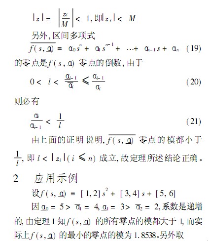 對于正系數區間多項式零點的一般估計, 我們有如下結論: