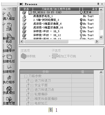 利用 cimatron 軟件可以解決復雜零件造型、編程等問題,實現自動編程,特別是對不規則復雜曲線、曲面和實體的編程,可以很大程度的提高編程時間和機床使用率。通過對該軟件中刀具庫的建立,工藝表的制定,可以大大縮短產品的生產周期和降低成本。特別值得一提的是該軟件具有智能化的向導工具條,該工具條給編程人員帶來了很大的便捷。