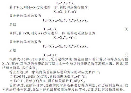 現(xiàn)假設(shè)第 i 次插補(bǔ)后 動(dòng)點(diǎn)坐標(biāo) N(Xi,Yi) 偏差函數(shù)為
