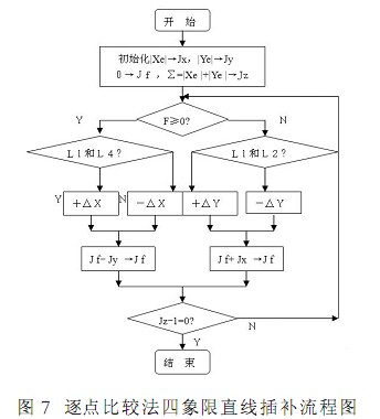 由此設(shè)計(jì)出四個(gè)象限內(nèi)直線插補(bǔ)的通用軟件流程圖如圖 7 所示