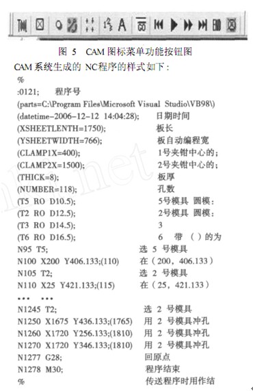基于 Visual Basic和 ActiveX Aut omati on技術 ,我公司已經開發出了汽車縱梁沖孔生產線 CAM系統、 TP80型數控液壓板料沖孔機 CAM系統、 數控沖床通用 CAM系統等 ,各種 CAM系統的功能雖然千差萬別 ,但總體實現的方法類似。下面談談 CAM系統實現的通用方法。