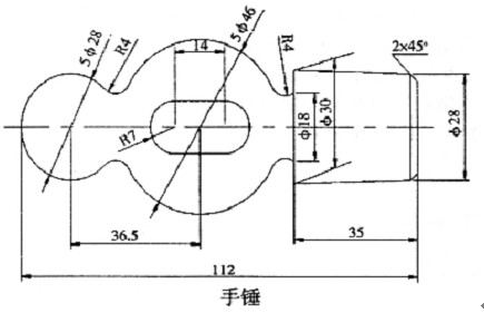 現以在 CK6136FANUC ( 程序系統: Series Oi Mate- TC) 數控車床上車削仿形手錘( 毛坯:¢50 鋁棒料) 為例, 談談如何把工藝和編程進行有機的結合。