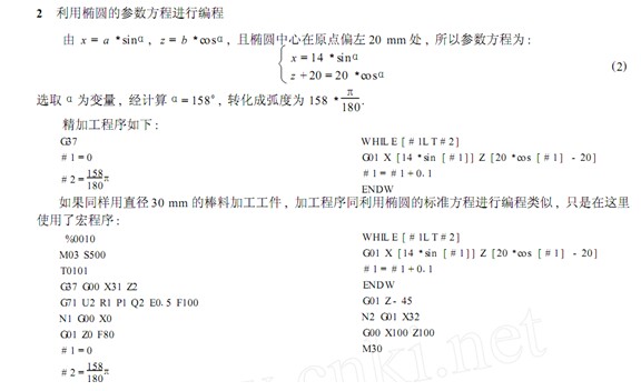 以上程序適用于華中世紀星系統(tǒng) , 采用半徑編程 , 如果使用直徑編程則需要把 x 的數(shù)值放大 2 倍. 在使用標(biāo)準(zhǔn)方程時需要注意判斷好 x 的正負號. 如果用 FANUC 系統(tǒng) , 采用參數(shù)方程時 , 要使用角度值 ,不能用弧度值