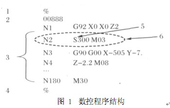 一個(gè)完整的數(shù)控加工程序由若干程序段組成 ,而數(shù)控程序段又由若干條數(shù)控指令按照一定的結(jié)構(gòu)構(gòu)成。數(shù)控程序結(jié)構(gòu)如圖 1所示。