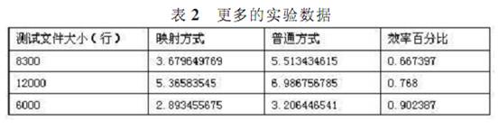 表 1 所測試的文件約 500 行 從數據可以看出 使用緩沖區映射方式 所花費的時間只有使用普通方式 用 DeviceIOControl 交換 的 78.85% 效率明顯提高