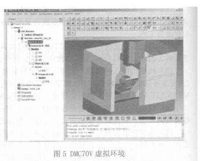 根據上述虛擬加工環境構建流程, 創建的配備Heidehan iTNC530 控制系統的 DMC70V 虛擬機床環境如圖5所示.