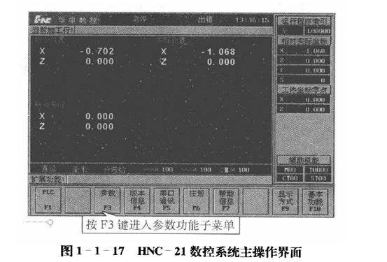 ①在圖1一1一17所示的主操作界面下,按[F3二鍵進(jìn)入?yún)?shù)功能子菜單;